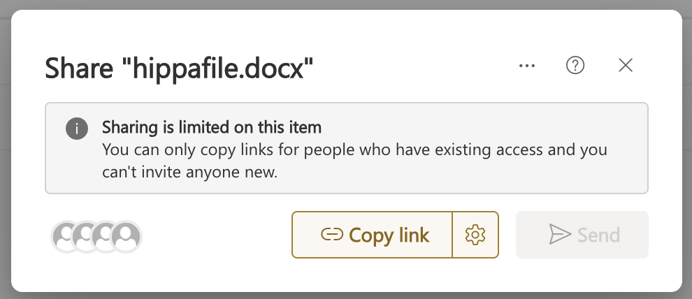 Policy tip in SharePoint/OneDrive when attempting to share a file externally
