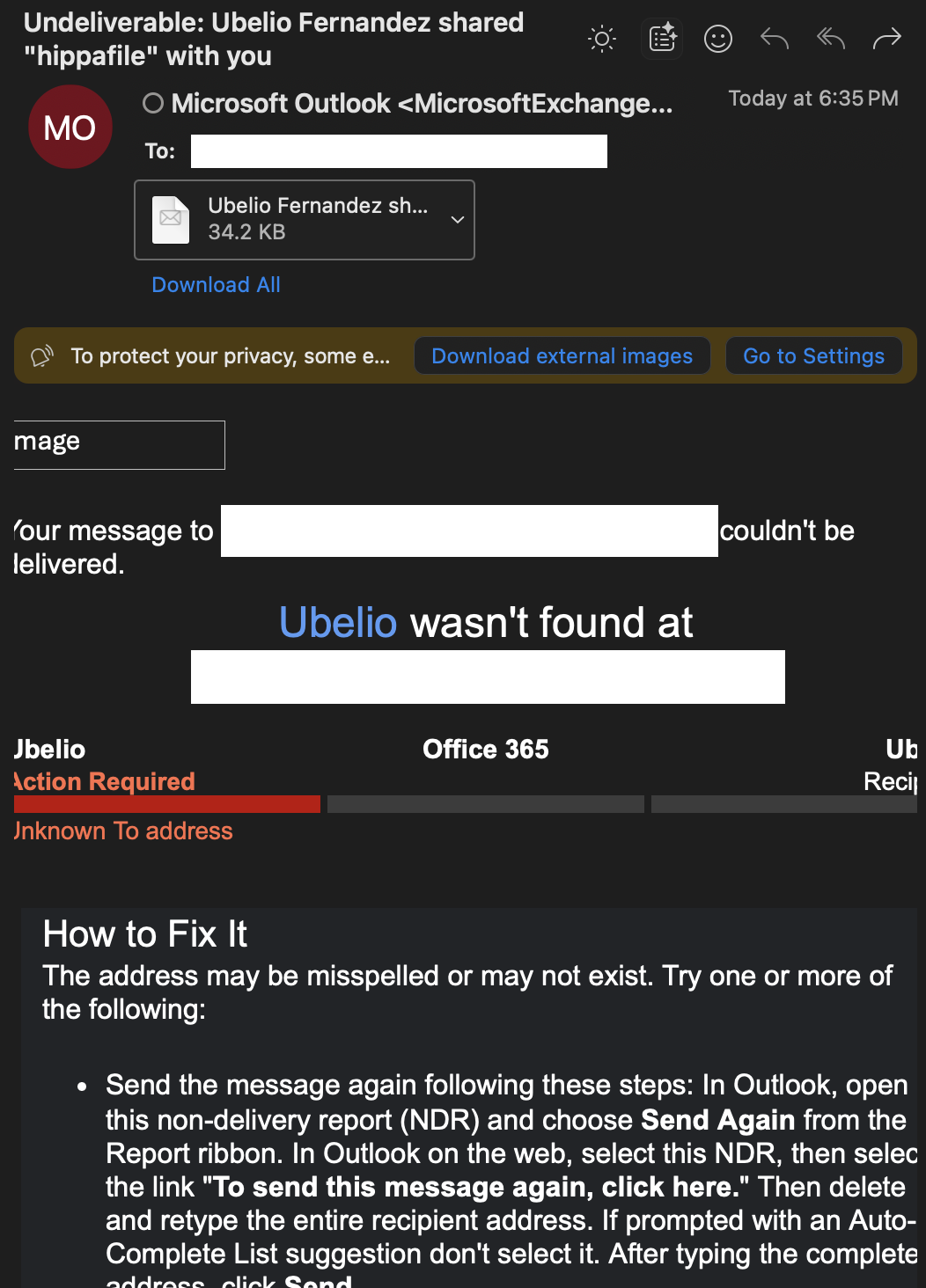 Outlook compose tip and/or NDR that indicates the external send was blocked