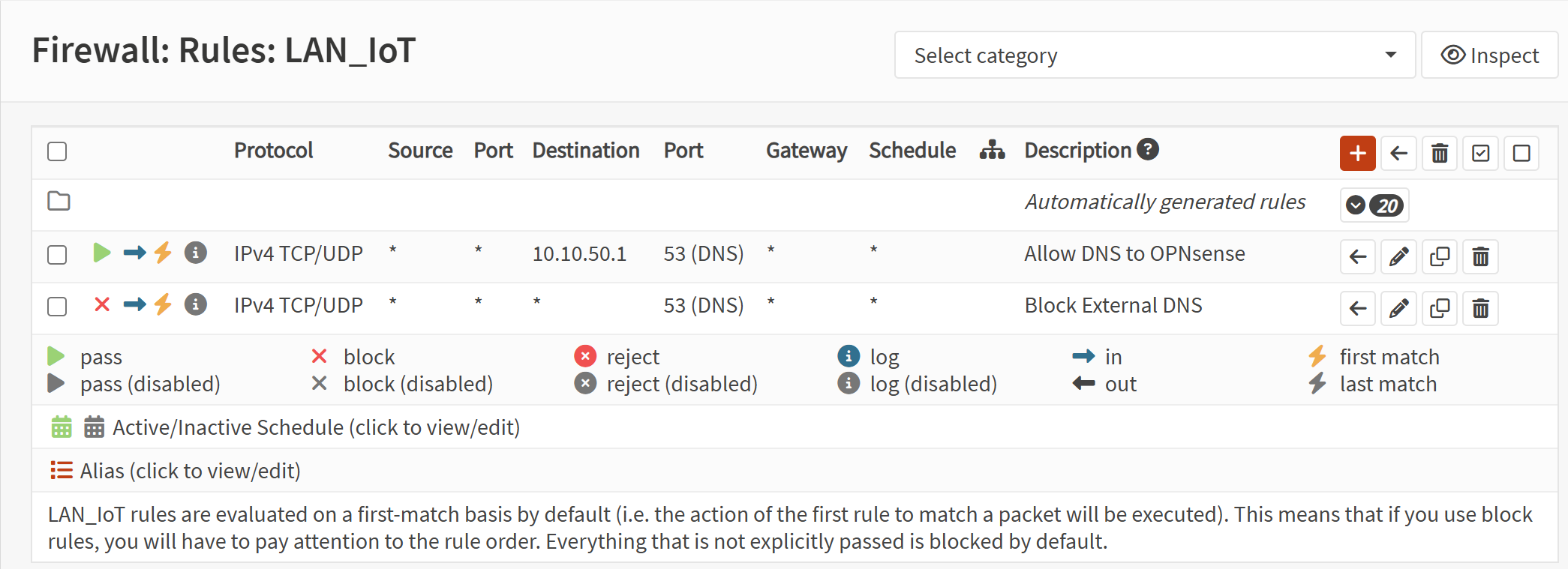 This lab enforces strict isolation for untrusted IoT and Guest networks. Both VLANs are prevented from reaching any internal RFC1918 subnets while still retaining DNS resolution and outbound internet access. Firewall logs confirm that inter-VLAN attempts from these networks are blocked and recorded, providing both security and visibility. The result is a hardened edge where untrusted devices can operate without exposing critical internal services or management networks.
